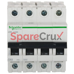 A9N4P63C | SCHNEIDER ELECTRIC | Acti9 xC60 4‑Pole Miniature Circuit Breaker, 63 A, C‑Curve, 10 kA Breaking Capacity