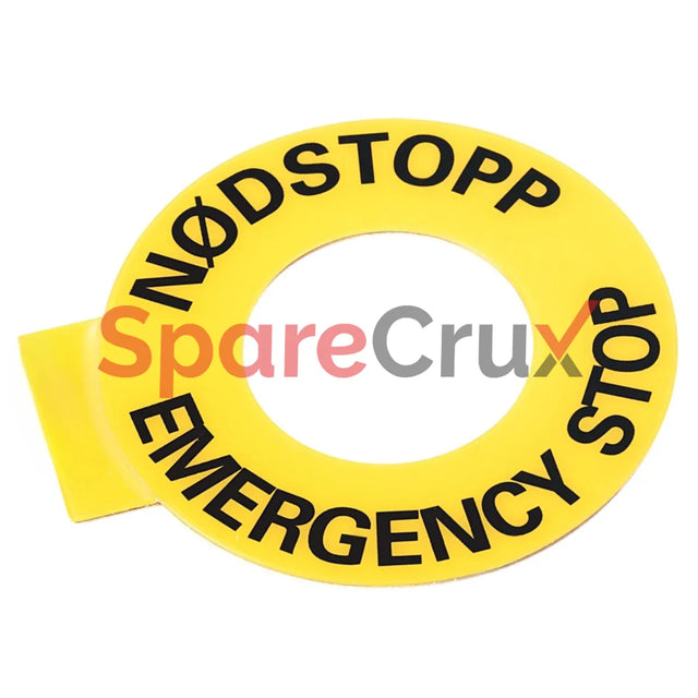 • Description: 90 mm Round Yellow Legend Plate with 'NÖDSTOPP, EMERGENCY STOP' Text
