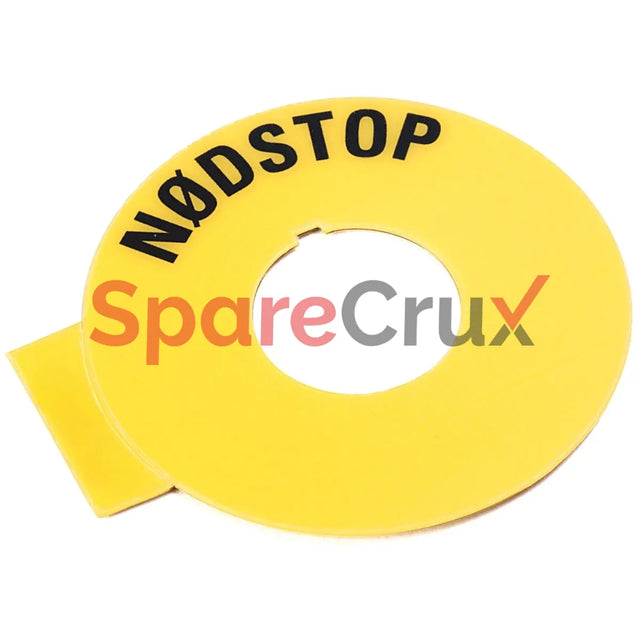 • Description: 60 mm Round Yellow Legend Plate with 'NØDSTOP' Text