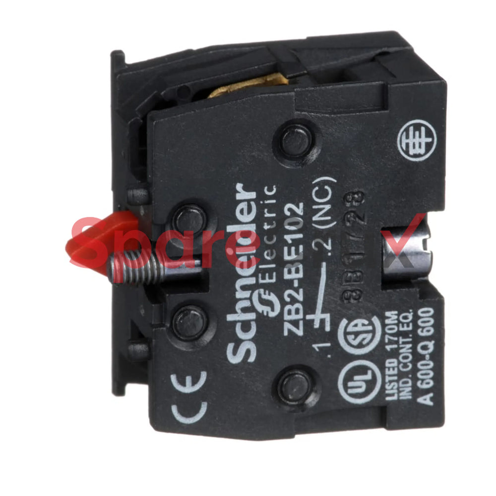 RB2-BE-102 | SCHNEIDER ELECTRIC | Harmony 22 mm Auxiliary Contact Block, 1 NC, Clip-On, For ZB2 Series Pushbuttons